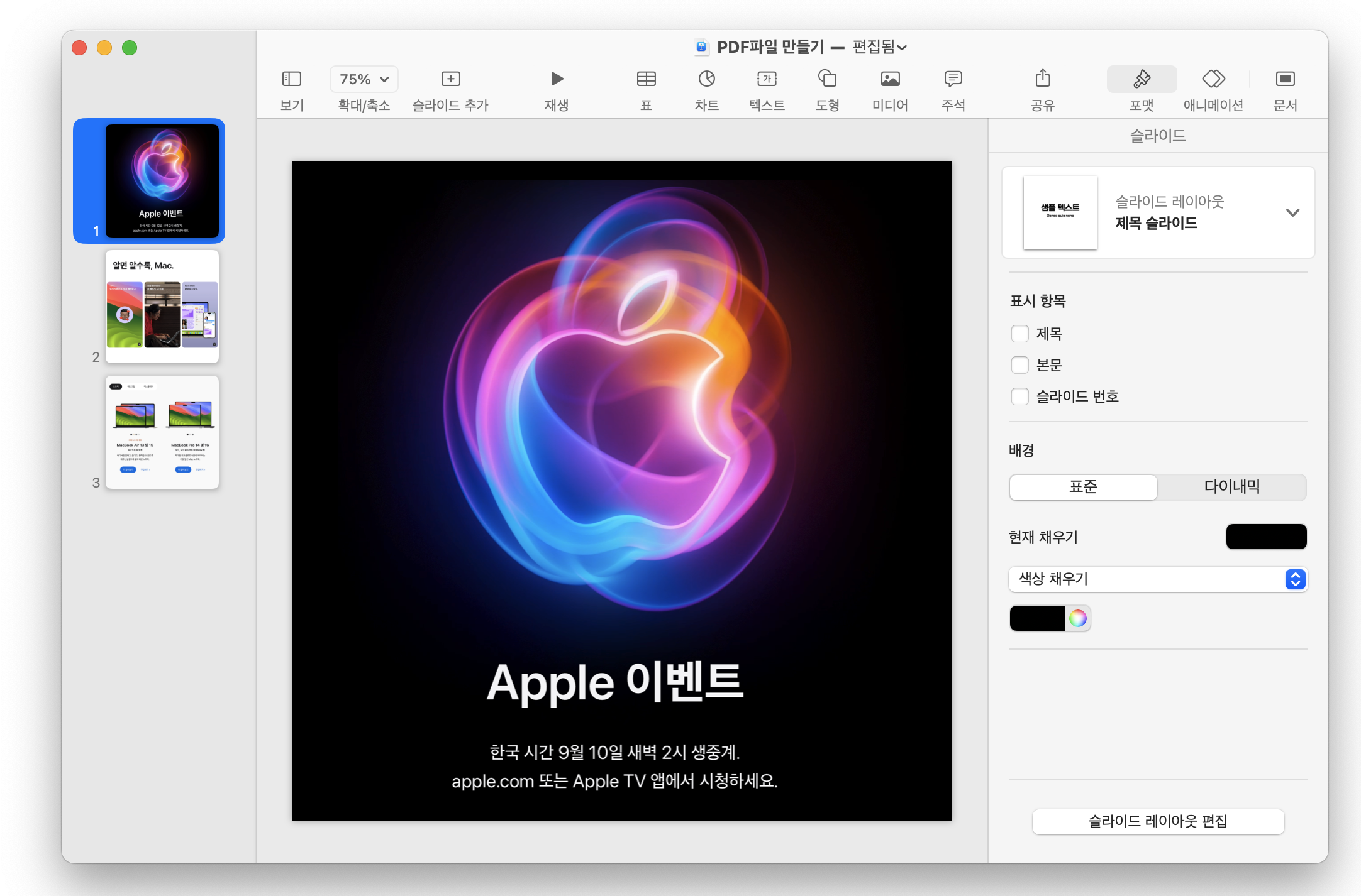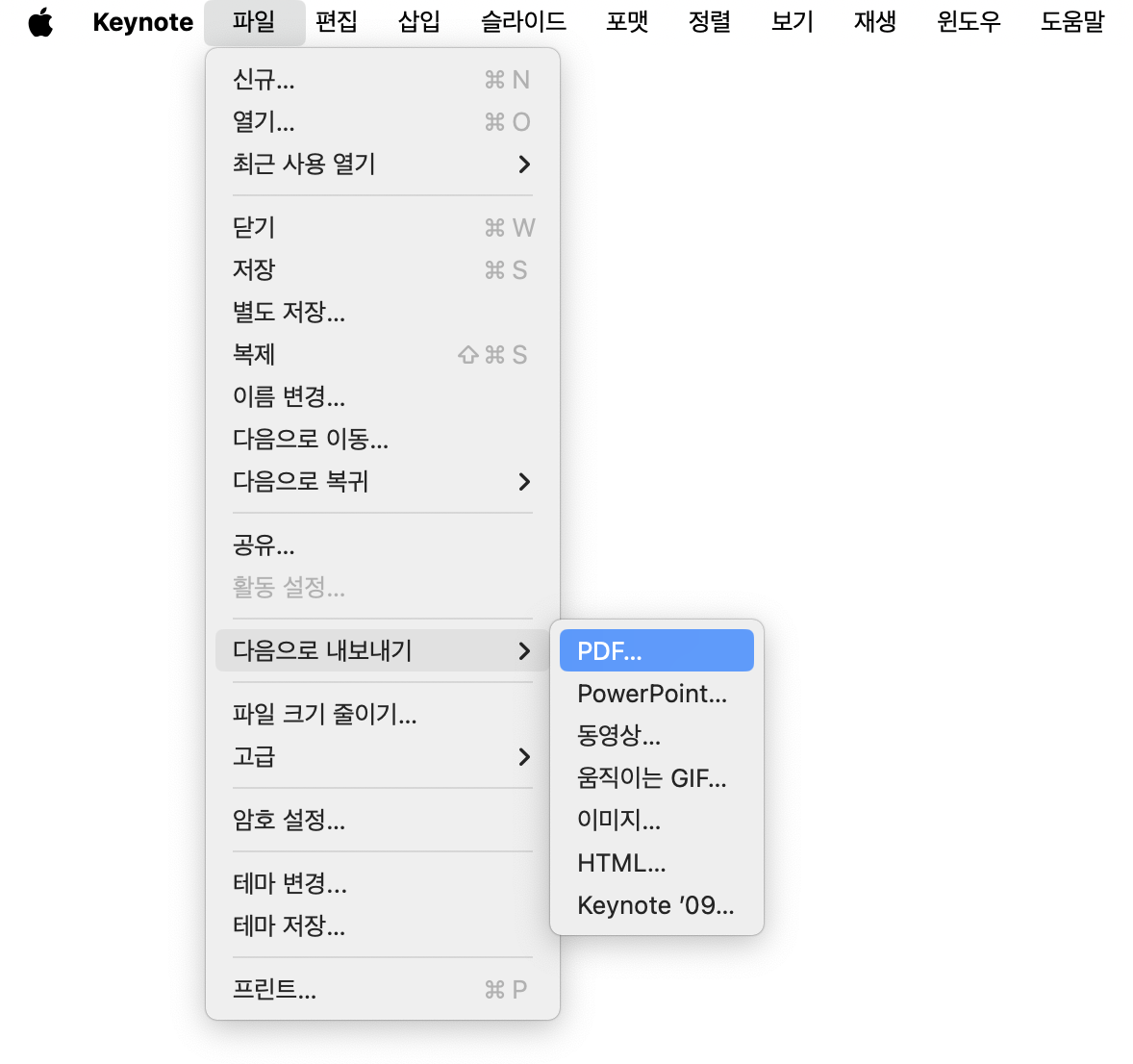keynote : PDF 파일 만드는 방법